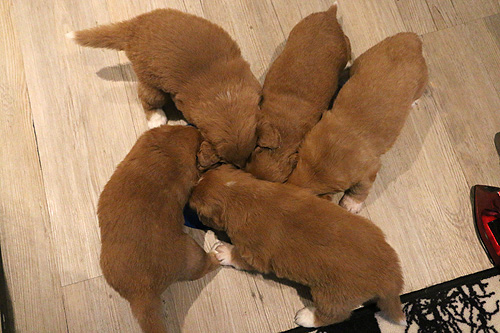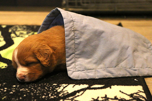 Lapset keksivät, että peittelemällä pennut, ne saavat olla meidän seurana vielä hieman pidempään.