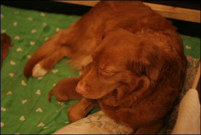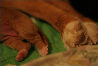 Riesan koivet ja häntä. Piina Sannin tassun päällä.