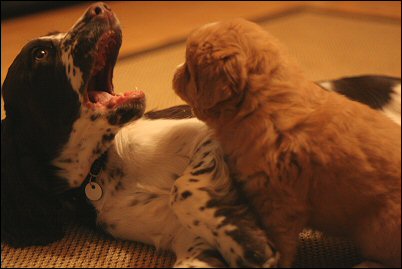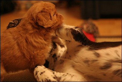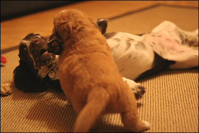 Pisama ja Riesa leikkivät.