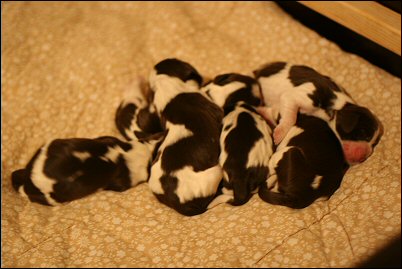 Ilona nukkuu kaiken aikaa pentujen kanssa. Etualalla nukkumassa Päivi.