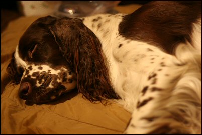 Menee lehmäläiskät sekaisin. Omanlainen tapa tuokin nukkua.