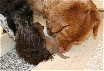 Näillä pennuilla kyllä äitejä ja hoitajia riittää.