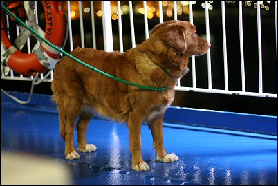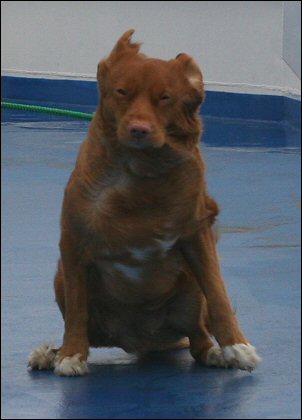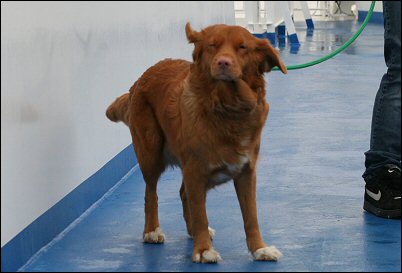 Pissapaikkalaatikkoa mietin alkuun kuinka Sanni hienohelma tulisi siihen suhtautumaan, neidillä kun tuntuu joskus olevan vaikeaa käydä hädillään ihan hihnalenkilläkin jos on liian sottaista pusikossa. ;) Eipä siinä onneksi ollut ongelmaa. Laatikko oli pieni mutta onneksi siisti ja varmasti juoksuilla oli oma osansa asiaan ja hätien tekeminen oli siksi helpompaa kun sai merkkailla. Tosin ihan kaikkea ei laatikkoon asti tullut ja vain ensimmäinen pissikerta oli se helppo, muuten piti hieman suostutella. Hytissä Sanni malttoi olla hyvin yksin kun käytiin katselemassa hieman paikkoja, laiva oli pieni mutta jotain sieltä kuitenkin löytyi.