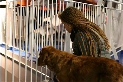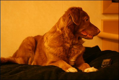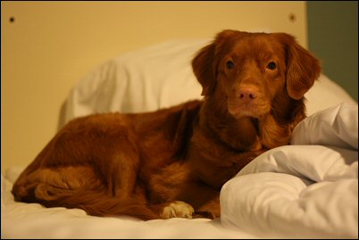 Tanskan puolella ajoimme katsomaan ensin suurin piirtein missä Kibaekin määränpäämme sijaitsee, siitä sitten Herningiin aamupalalle (tuoreita sämpylöitä ja kahvia) ja soitto Anne Marielle olisiko Oskar jo hereillä. :) Kävimme siis heti sunnuntai-aamusta Sannin kanssa moikkaamassa toivottavasti tulevien pentujen isää ja komea oli poitsu kerta kaikkiaan! Oskar rakastui tyystin Sanniin ja ei kauaa mennyt niin pariskunta sai jo toisensa. Saimme ohjeet kuinka löydämme hotellille ja sovittiin koska tulemme taas käymään. Hotelli sijaitsi Herningissä ja kahden aikaan saisimme huoneen käyttöömme, oli siis aikaa tutustua hieman paikkoihin (ulkoilemaan ei tehnyt mieli, vettä tuli edelleen kuin ..) ja löytyihän sieltä hotellin pihalta taas wlankin.