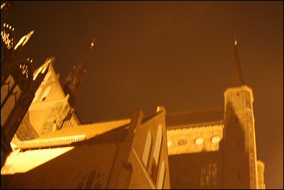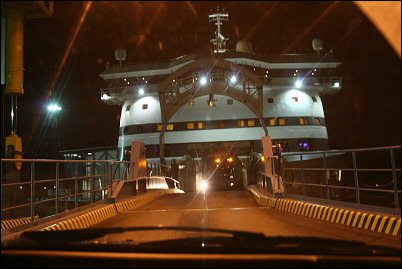 Perillä Rostockissa oltiin tosiaan klo 21.30 paikallista aikaa, eli jo kovin pimeää, sen lisäksi satoi melkein koko ajan kuin esterin perseestä, joten kuvat Saksanmaalta ovat kovin vähäisiä, ts, niitä ei ole. Tutustuttiin hieman Rostockin lauantaiseen iltamenoon ja sitten lähdettiinkin puskemaan hiljalleen kohti määränpäätä. Kiire ei ollut. Huoltoasemalta haimme pientä naposteltavaa ja juotavaa ja suuntasimme itsemme Lübeckiin missä kävimme mäkkäriaterialla ja haimme Sannille vettä. Kaupungilla löysimme wlan-yhteyden, heh, mitä toki hieman käytimme ja lähetimme mm terveiset Suomeen. Lübeckin jälkeen ajoimme yksinkertaisesti vaan pimeässä, Kielin kanava valaistuna oli suht hieno. Saksan ja Tanskan raja vaan ylitettiin, koira jälleen nuuskien innoissaan meidän keskellä että mitähän nyt tapahtuu.