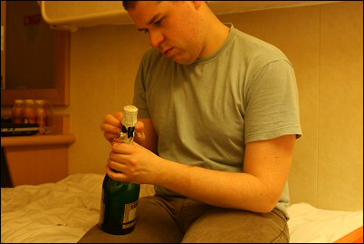 Päivällä kävimme taas seisovassa syömässä ja toki ;) Sannille tuotiin taas murkinaa. Illalla katseltiin vain kelloa ja pelattiin lasten trivialia. Laiva tosiaan oli aika pieni ja liioin ei haluttu Sannia jättää pitkiksi ajoiksi hyttiin yksinään, toisaalta, illasta kun päästiin enemmän avomerelle tuuli yltyi sellaiseksi että nähtiin parhaaksi vaan maata sängyllä ja ajatella kauniita ajatuksia. ;) Sanni raukkakin aika pahoinvoiva, rassukka, ei varmasti ymmärtänyt miksi se kyseinen hotellihuone niin hytkyi ja vaappui.
