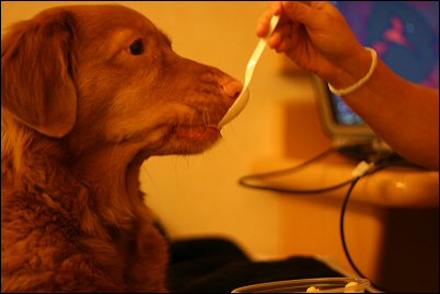 Hytissä luun syöntiä kun me käytiin katselemassa paikkoja.