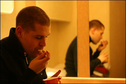 1. joulukuuta olikin sitten iltaan asti kiikkumista laivalla. Käytiin Jaakon kanssa kertaalleen syömässä keskellä päivää, oikein hyvät pöperöt oli (Sannikin sai niistä osansa).
